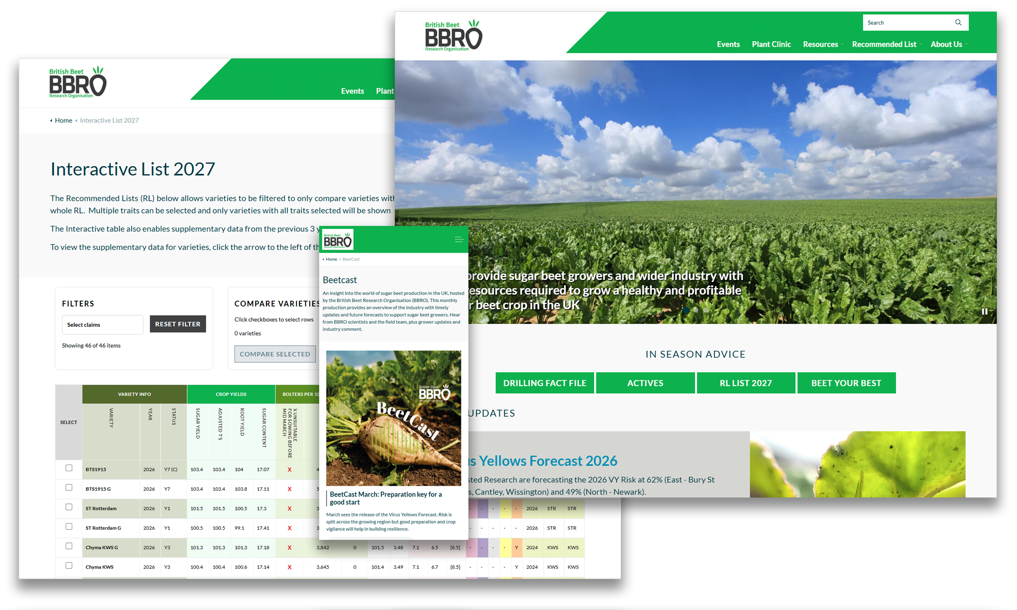 A key highlight of the project is the custom-developed Recommended List tool. This data-driven feature enables users to explore and compare sugar beet varieties based on performance metrics such as yield, disease resistance, and bolting risk. Designed with usability in mind, the tool simplifies complex datasets through intuitive filtering and structured presentation, making the information both accessible and actionable.